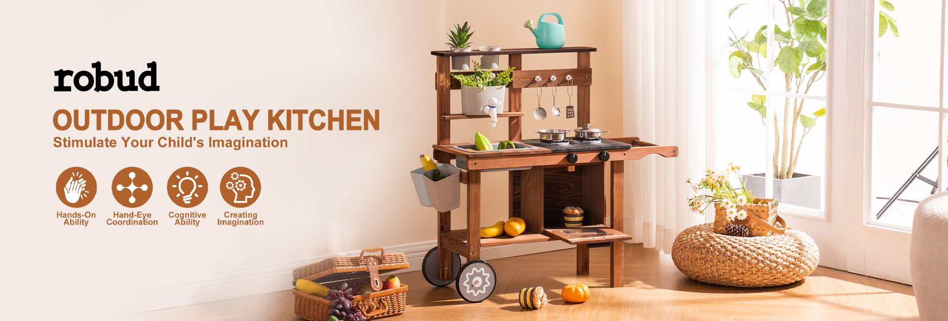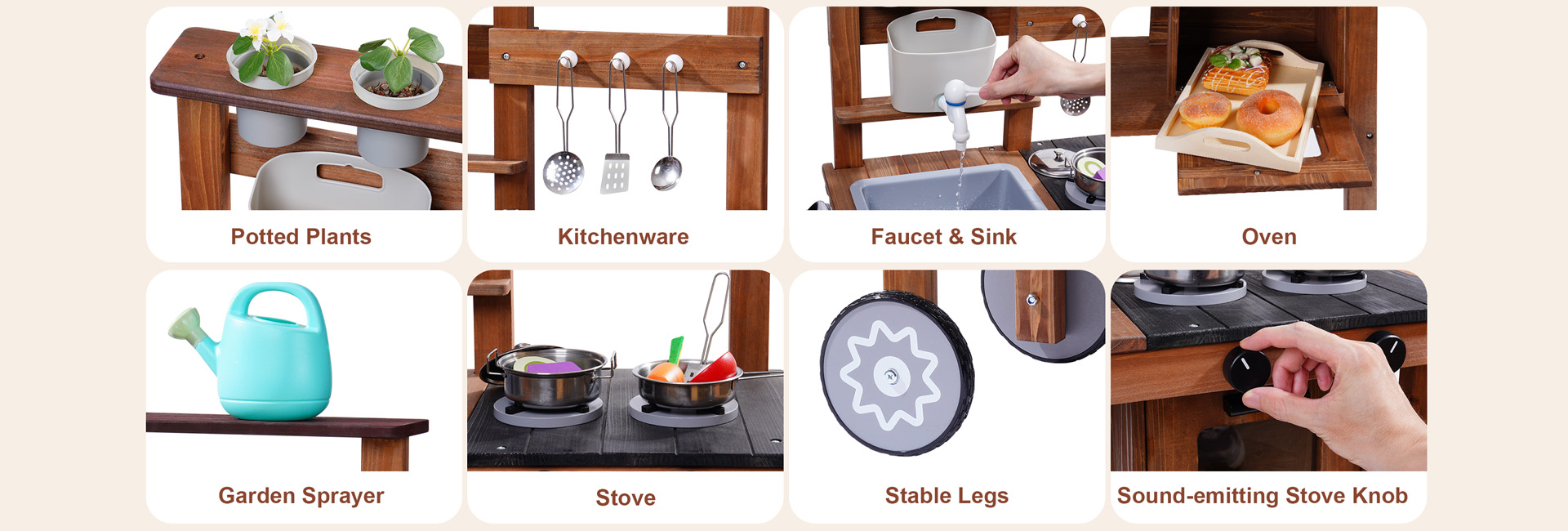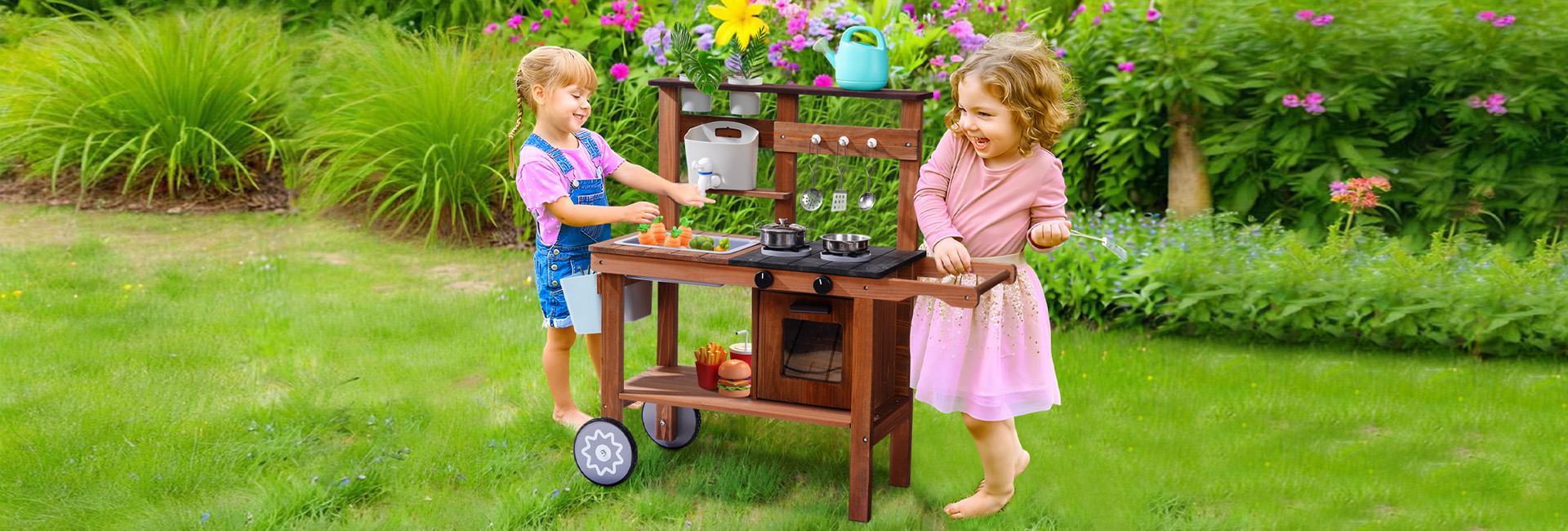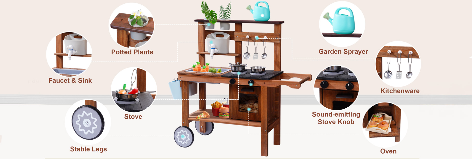 ROBUD Wooden Outdoor Kitchen Playset with Wheels - Mud