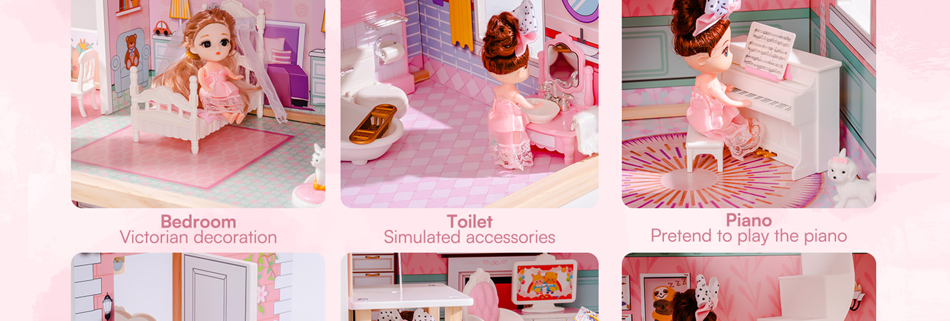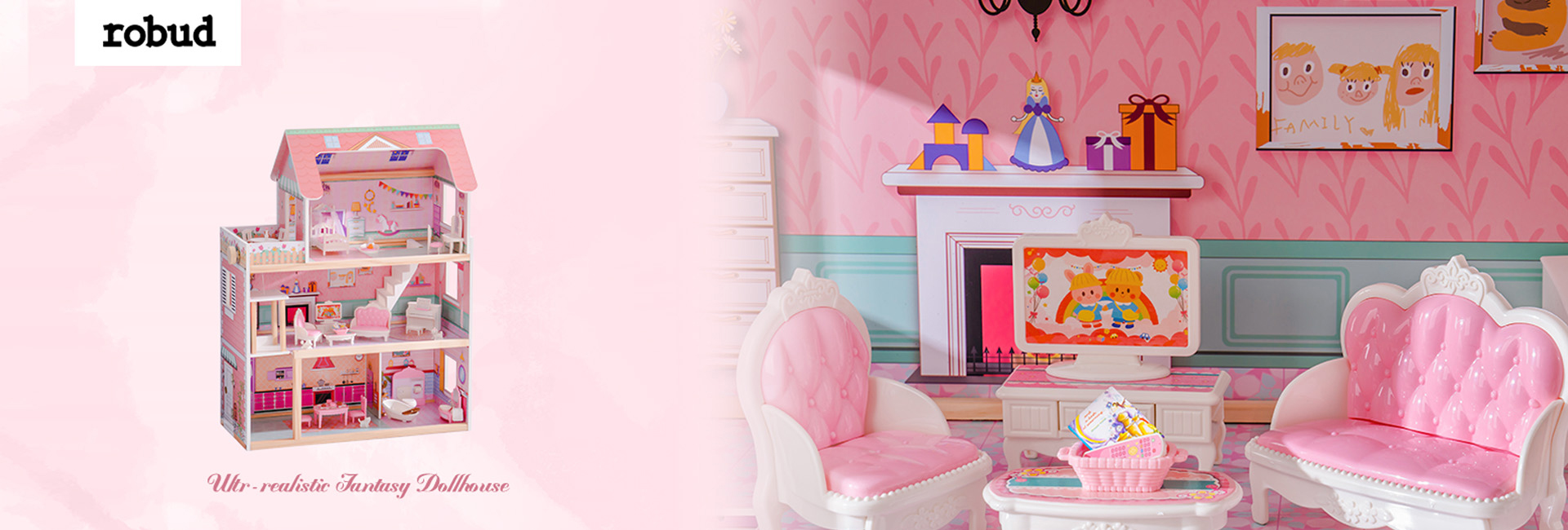 CONSTRUCCIÓN DE MADERA SÓLIDA: Hecha de madera sólida con bordes pulidos y suaves, la casa de muñecas ROBUD ha sido probada para cumplir con los estándares de seguridad de juguetes de EE. UU. para garantizar un juego seguro para las niñas.