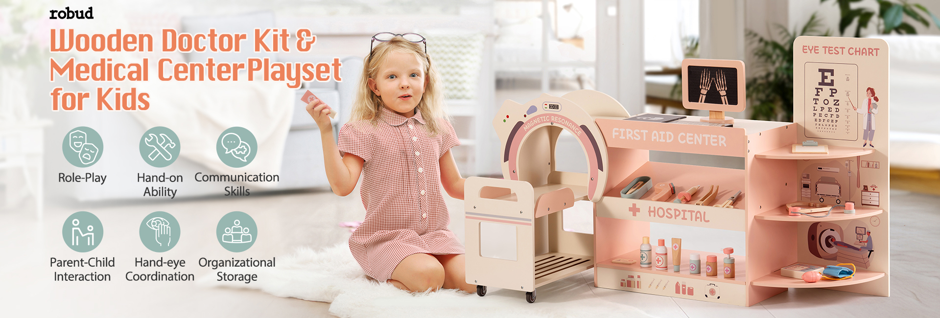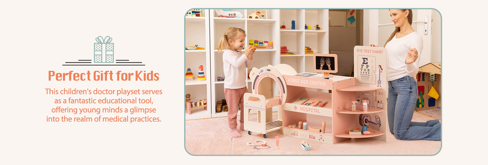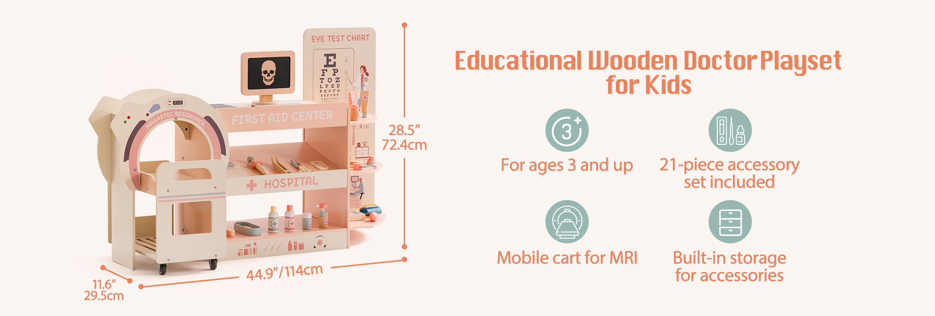 Creative doctor toy set for exciting role play – This wooden doctor's activity center offers children a realistic environment with magnetic resonance imaging, visual examination, and interactive elements. Ideal for imaginative role play, this toy encourages social interaction.