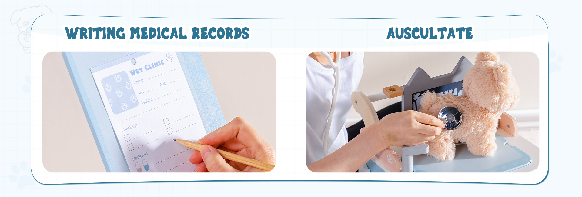 • 💉Favoriser la créativité et l'empathie - Ce set de jeu vétérinaire encourage les enfants à prendre soin de leurs "patients", cultivant l'empathie, la responsabilité et la compréhension de l'importance de la santé animale à travers le jeu imaginatif.