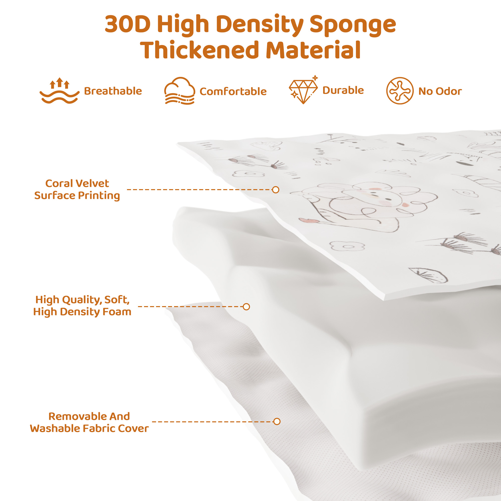 Thicker and Softer Premium Foam: Our baby play mats for floor are thicker than most other brands on the market. Filled with high-quality, non-toxic 1.2-inch thick slow rebound memory foam; made from 100% coral fleece material, it's skin-friendly and offers a comfortable touch, providing your little ones with a cozy spot to relax, play, and develop their skills.