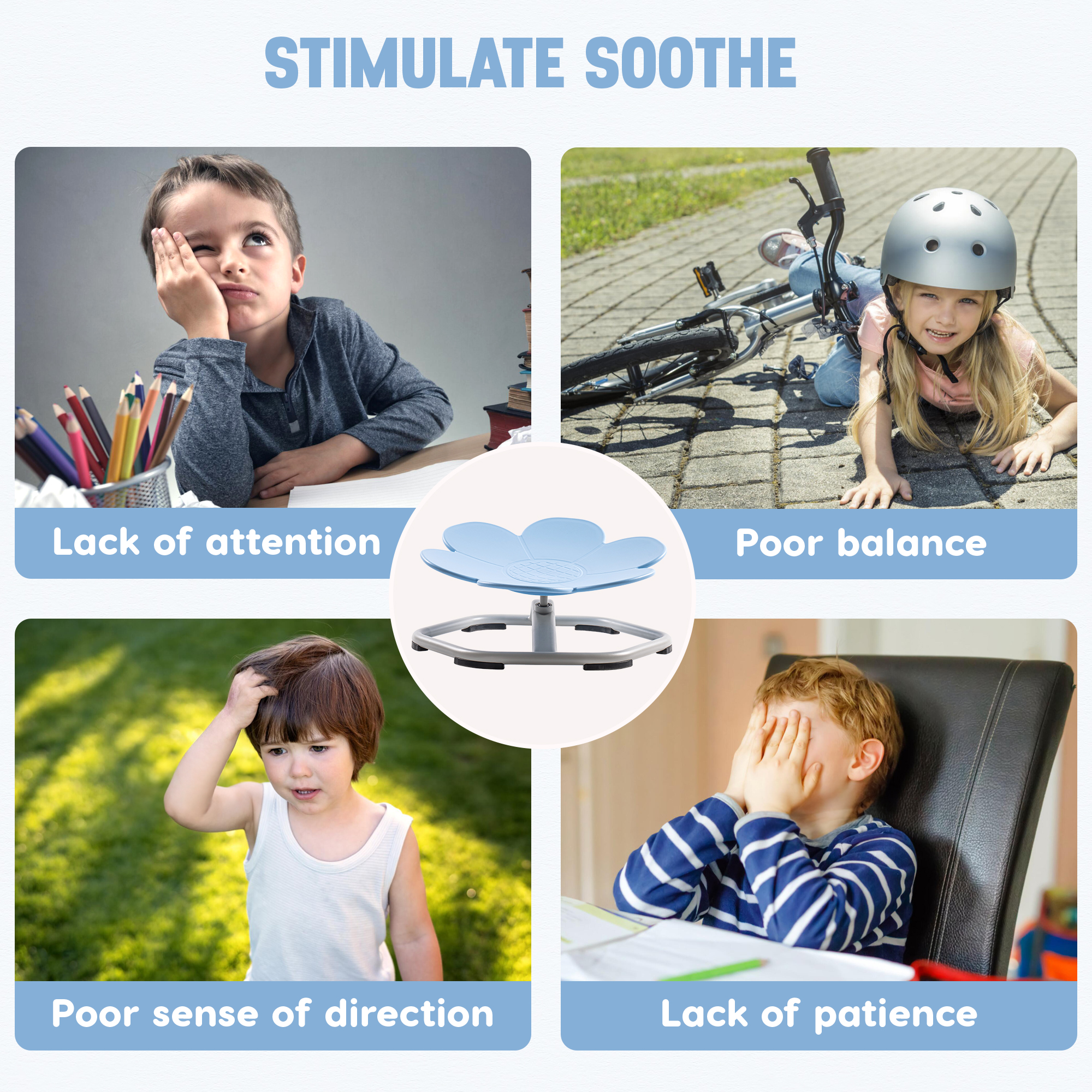 ROBUD Kids Sensory Swivel Chair, Autism Kids Swivel Chair with Non-Slip Design, Training Body Coordination, Flower Shape Wobble Chair, No Assembly, Pink & Blue