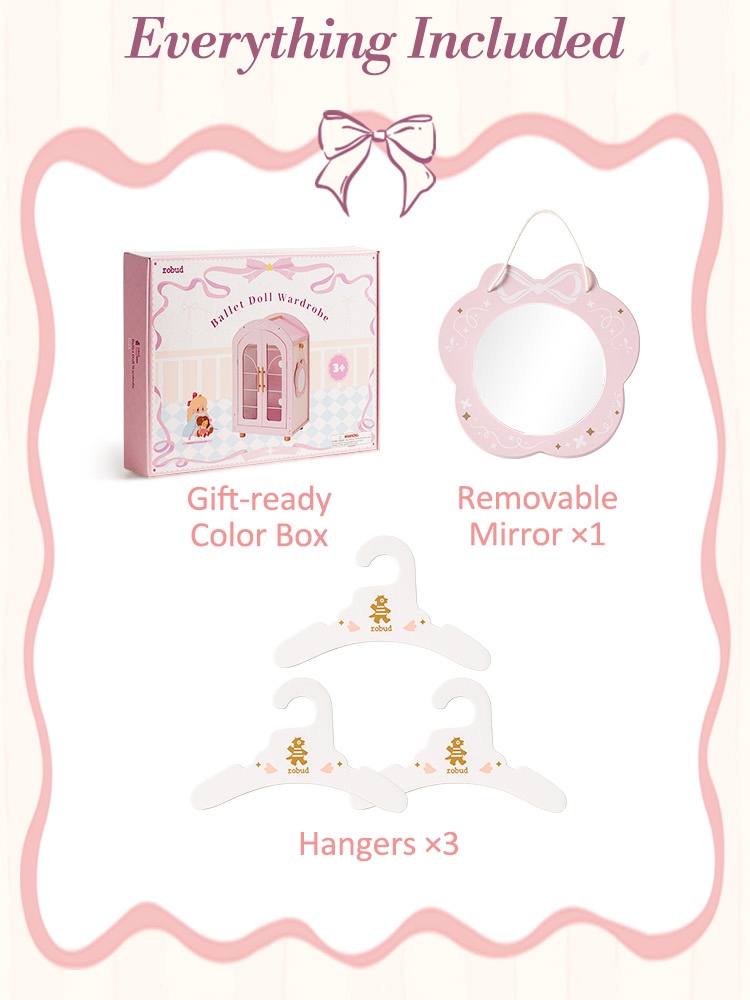 💗 Dress-Up Fun with Movable Mirror: This doll closet is packed with playful features! The removable side mirror lets dolls “check their look” before heading out to imaginary tea parties. The top shelf is perfect for stashing tiny shoes and bags and other doll accessories, and the easy-grip handles make it a breeze for small hands to open and close.