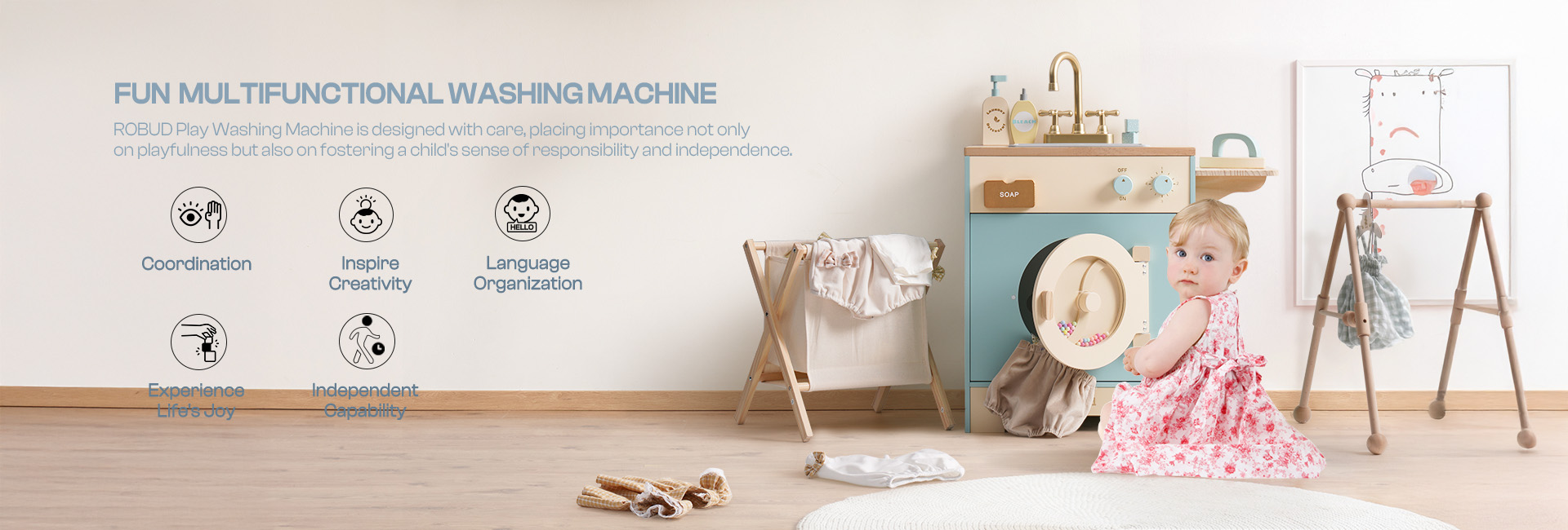 - 🔍EDUCATIONAL & INTERACTIVE TOY: More than just a toy, it functions as an interactive tool that helps children learn essential life skills. Through simulated laundry activities, kids can gain basic knowledge about washing, and playing with friends further enhances social interactions.