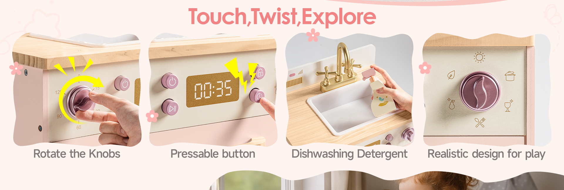 Multi-function: This dishwasher focuses on cleaning, storage and adjustment, and is equipped with realistic sound effect knobs, allowing children to experience real fun in the simulated cleaning process. The combination of multiple functions enriches the game experience and stimulates children's creativity.