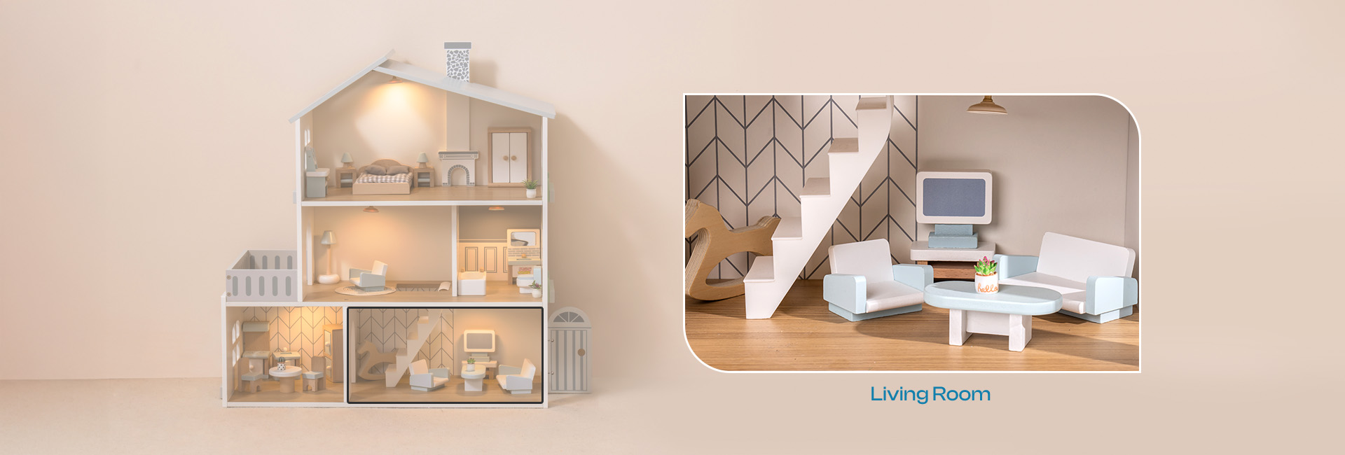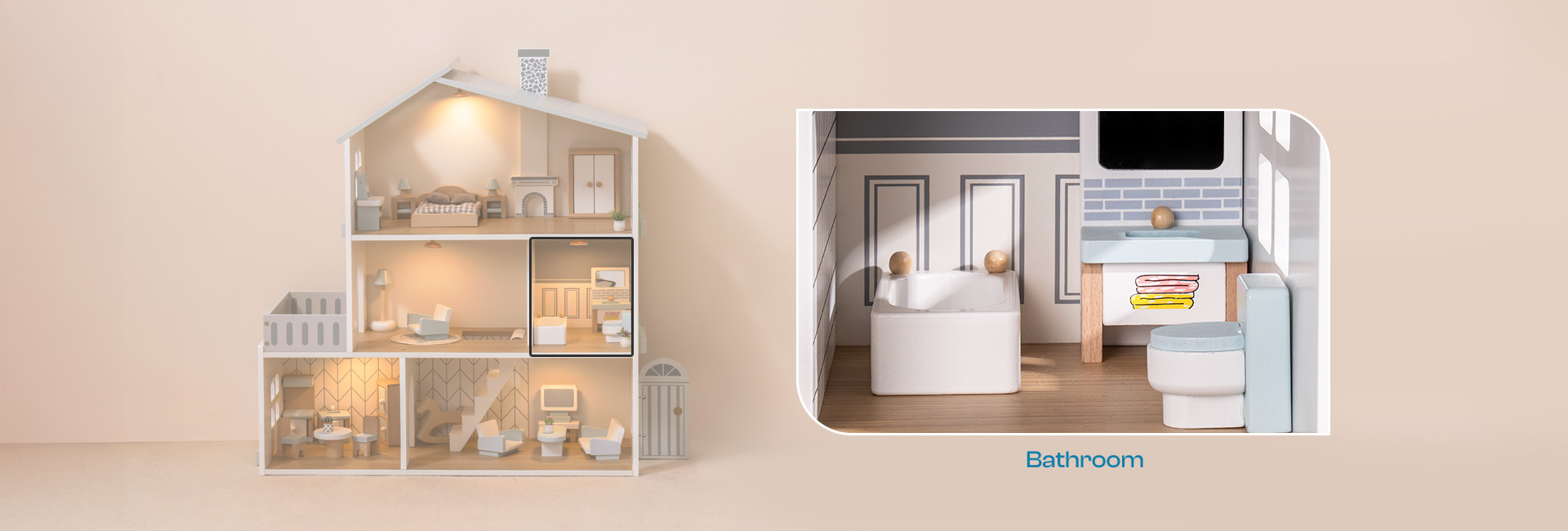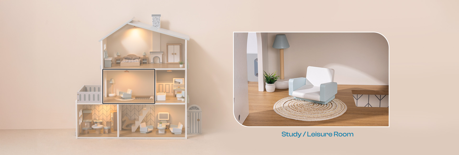 EDUCATIONAL & ENTERTAINMENT: With soft colors, cute yet stylish appearance, this dollhouse serves not only as a toy but also as an educational tool, helping children learn basic household scenes and skills while cultivating their social abilities and imagination.
