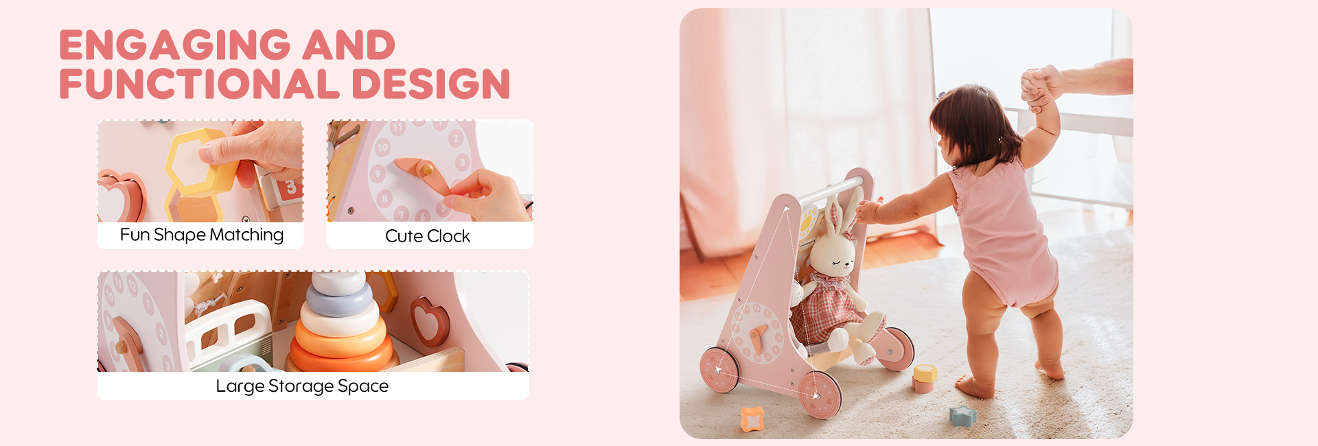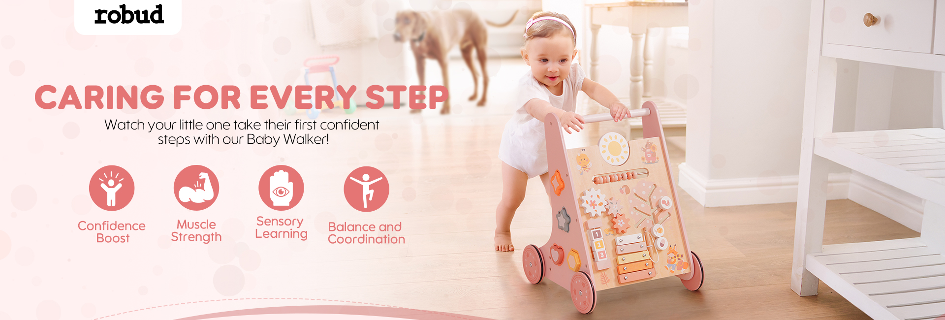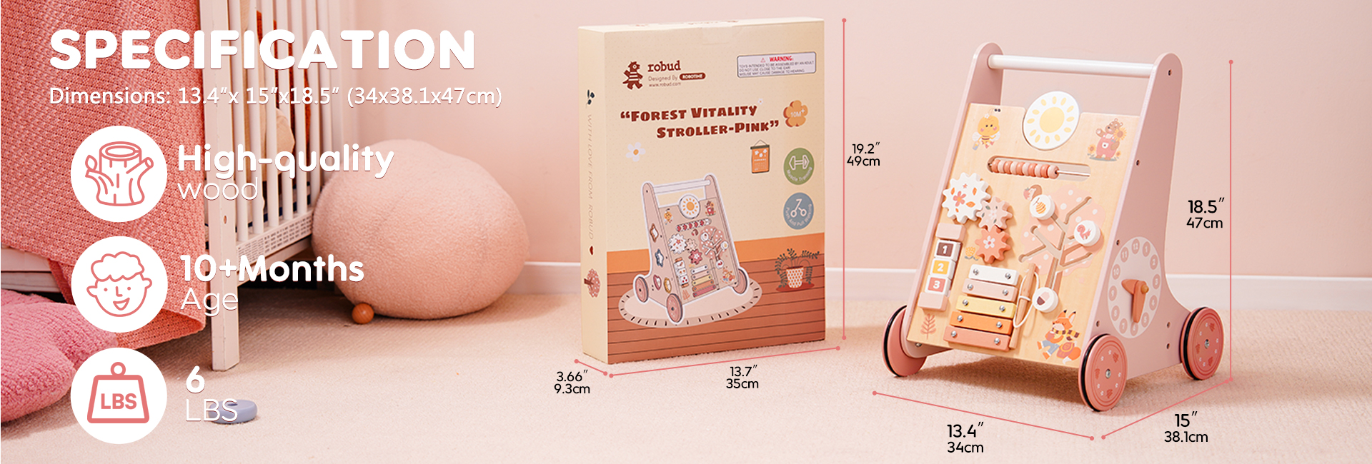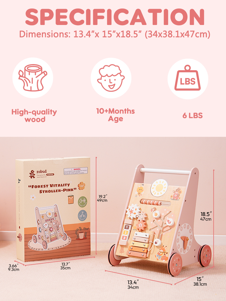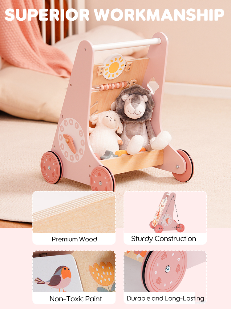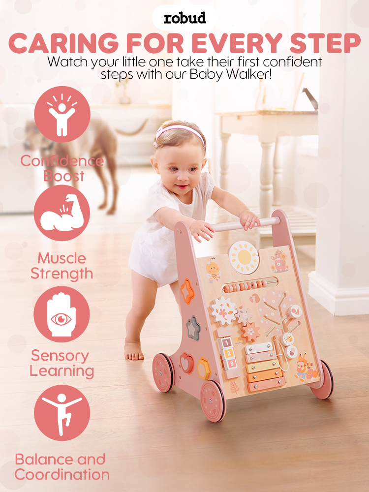 ROBUD Wooden Pink Baby Walker