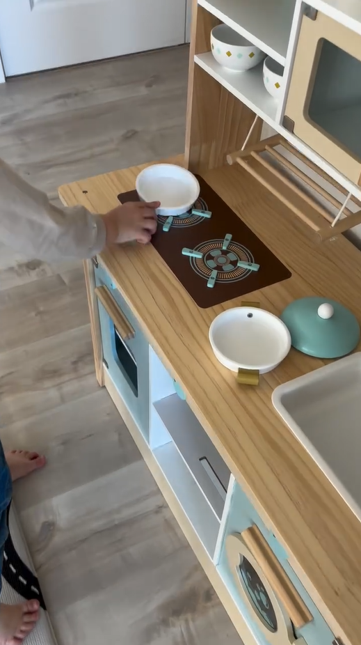 🎁Wooden Toddlers Kitchen Set: Made of MDF and high-quality wood, suitable for toddlers ages 3+. Compared with a plastic children's kitchen, the kids kitchen features a more stable structure and provides longer service.